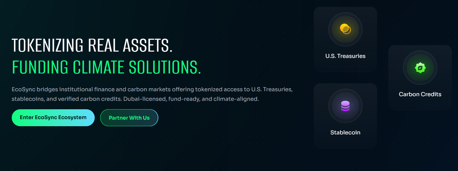 EcoSync FZ-LLC总部位于迪拜,专注于将 已验证碳信用和真实环境资产代币化上链。平台提供透明托管、交易和流动性提供,严格遵循国际标准,包括 Verra、Gold Standard 以及 Puro.earth。同时,EcoSync积极支持东盟及GCC地区的碳减排项目,推动区域可持续金融发展。